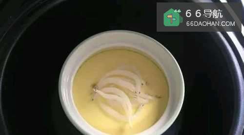 8蛋羹蒸好后取出撒上葱花。