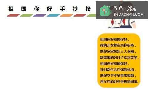 5最后,在【祖国你好手抄报】标题的下方左侧处,画出祖国你好相关内容及外框线,如下图所示。