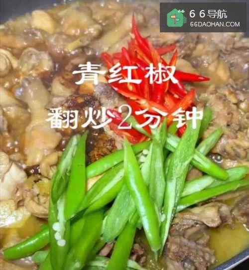 3水开后,加入盐,老抽,放入青红椒片翻炒2分钟后出锅。