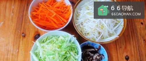 首先准备好配菜,配菜不是固定的,大家也可以根据自己的喜好来搭配,我今天用到的是胡萝卜,包菜,绿豆芽和香菇。