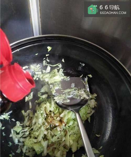 5在锅中加入酱油,把洋白菜炒香,但颜色不要太深。