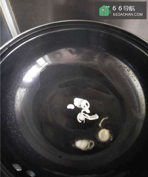 3在锅中放入花生油,油八成热后,放入葱花炝锅。