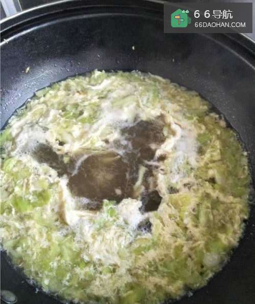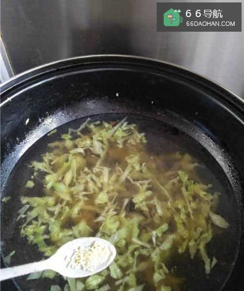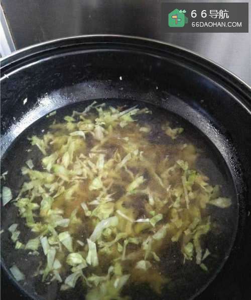 10将所有饼丝倒入汤中,用铲子搅拌均匀。
