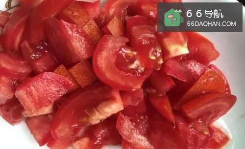 2番茄洗净,切丁。