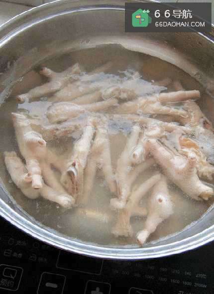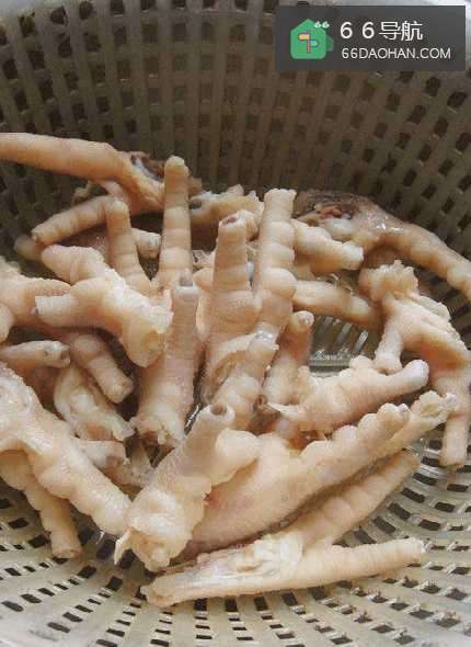 鸡爪洗净,去掉前面的指尖,一分为二,也可去骨,按自己口感喜好。