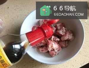 6排骨拌匀下生抽,分别加入豆鼓、生姜、酸辣椒