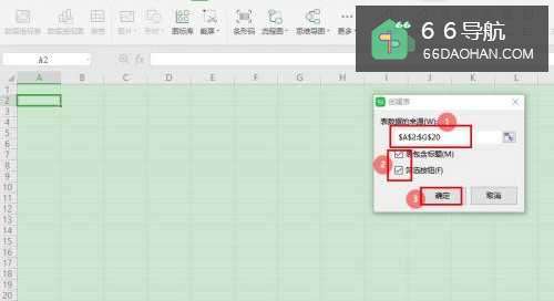 3在“创建表”对话框中,设置【表数据源】,如A2G20;