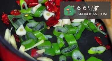 8锅中留底油,下入花椒辣椒煸香,下入葱姜蒜煸香,倒入鸡块煸炒片刻