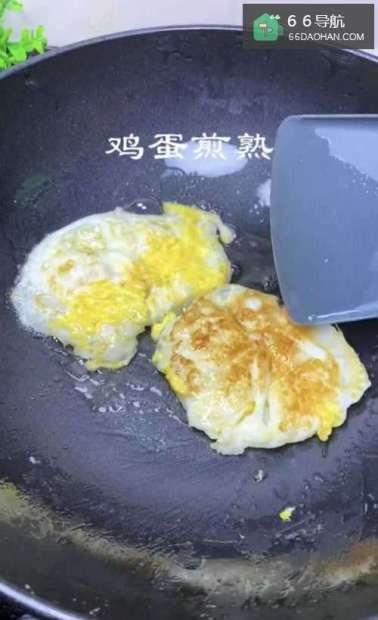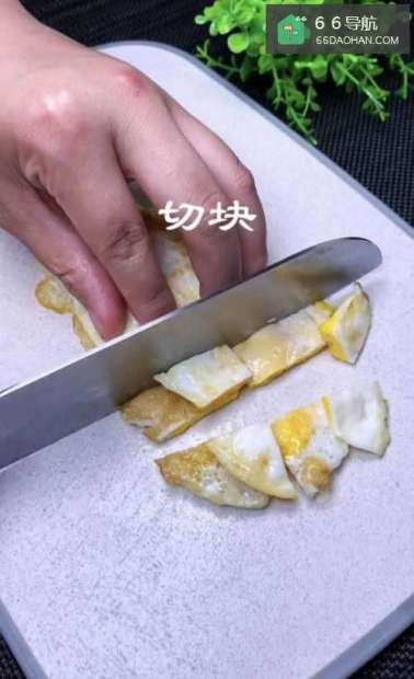 3将煎好的两个鸡蛋切块