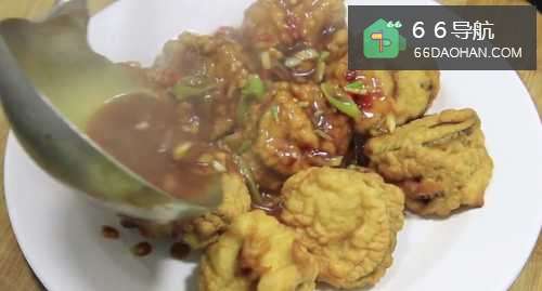 1010.后勾入一点水淀粉把汤汁熬至粘稠起泡,起锅把汤汁倒在茄夹上面,撒上一把白芝麻即可食用了。