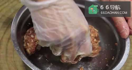 1.先准备瘦肉一块,先切成肉片,在剁成肉沫放入盆中,加入食盐2克、鸡粉1克、胡椒粉0.5克、然后顺着一个方向不停的搅拌摔打,使调料拌匀化开,让肉末充分的吸收调料。