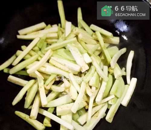 3烧热锅放油,放入切好的茄子,大火快速翻炒。