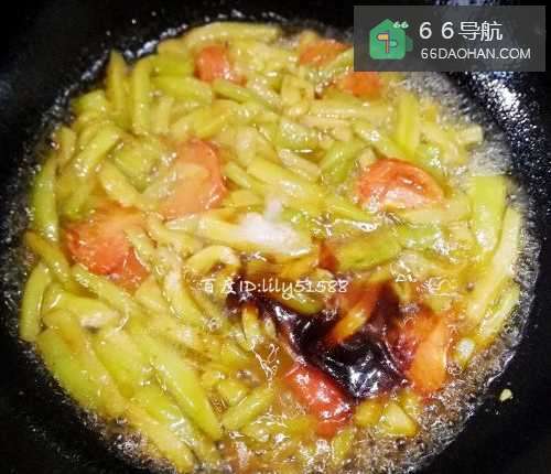 6茄子和西红柿都熟了之后,加入少量的盐,蚝油,生抽,白糖调味。