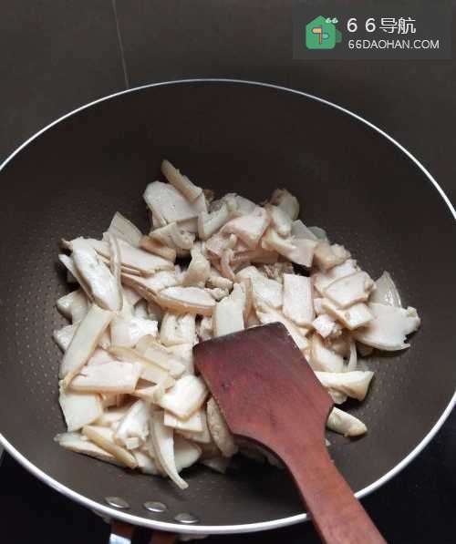 5如图,待肉片熟透后放入适量香醋和鸡精,翻炒均匀后关火。