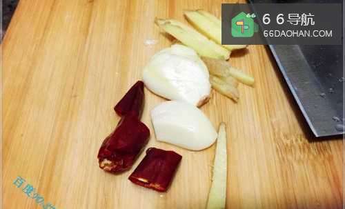 3准备少许佐料,蒜头、生姜、辣椒干,将蒜头拍碎去除外壳,然后切成长片或者大块状;生姜用菜刀刮去外皮,然后洗净切成丝状;辣椒干洗净切成几段。