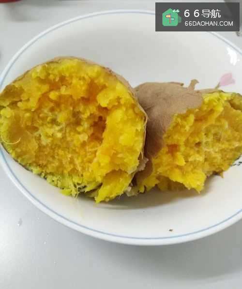 7轻轻掰开红薯,软软的,香香的,吃起来又香又甜,特别好吃。