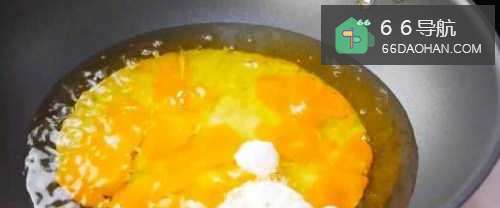 6这个时候我们开小火,将鸡蛋慢慢炸至定型。