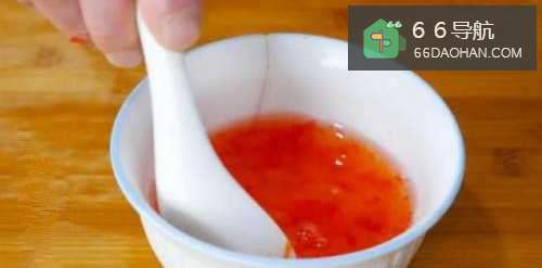 7继续复炸一分钟,一分钟后把鸡蛋炸至金黄捞出备用就可以啦!准备料汁白糖十克倒入碗中,然后再来点番茄酱,再放入五克的精盐,放入两勺白醋,同时再加入半碗的清水。