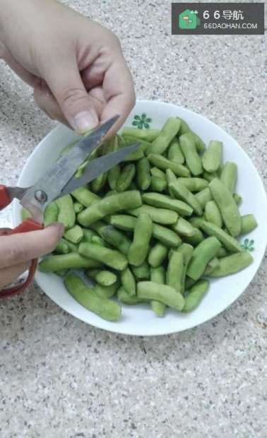 毛豆购买的时候挑选一下,不要太老的,表面的外壳青青绿绿的才好吃,然后使用剪刀或者是其他器具把毛豆的两端进行剪开方便入味进去。
