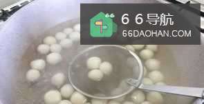 2锅中烧适量的水,待水开后,将揉好的糯米粉做成大小均匀的圆子,放入锅中煮,待圆子全部浮起来后捞出