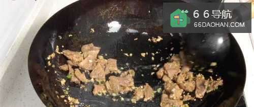 11倒入腌制好的瘦肉,翻炒到瘦肉颜色变白