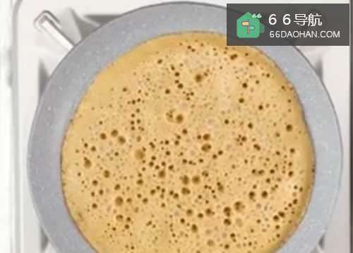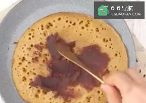 3热锅,涮上一层油,倒入搅拌好的面粉糊,不要太多适量就可以。