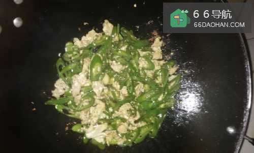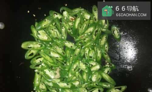 把辣椒放入锅里,炒大概两分钟,火不要太大,然后放盐,再炒一分钟。