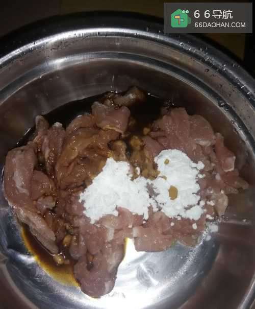 把切好的瘦肉放入酱油生粉,搅拌均匀。