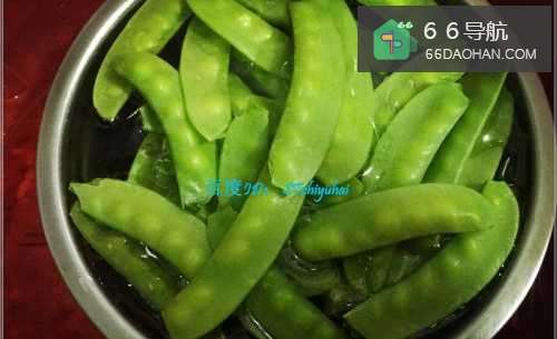 2将去豆脊的荷兰豆放入水中清洗干净。