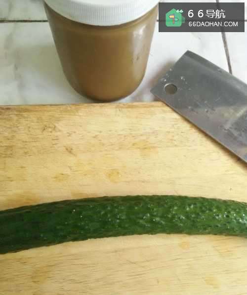 准备一根黄瓜和芝麻酱。