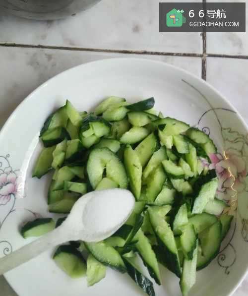 9再把两勺芝麻酱浇在黄瓜上,然后拌匀,一盘爽口的黄瓜就做好了。