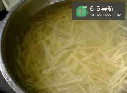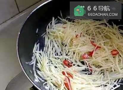 5把我们浸泡好的土豆丝导入锅中,大火翻炒12分钟。