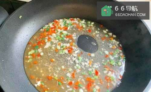 4中火爆香蒜末,加入蚝油、34汤匙水、太白粉、葱末、辣椒末,煮至酱汁浓稠后起锅放凉备用
