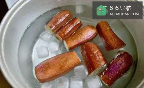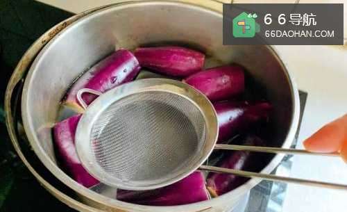 3准备一锅冰水,煮软的茄子捞起后马上泡在冰水中
