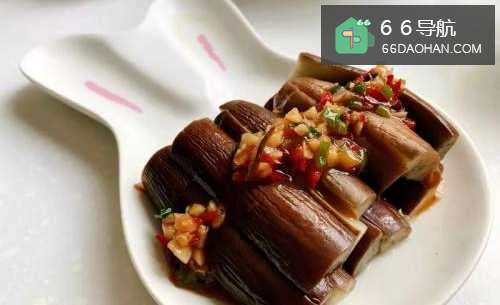 5将茄子从中间十字形切开,摆好盘后淋上酱汁即可