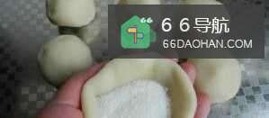 6烫面团取出后稍微冷凉,加入少许泡打粉揉成光滑的面团。