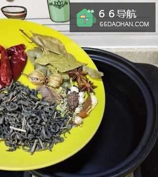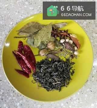 2准备茶叶、干辣椒、大料是买的时候配好的,有香叶、桂皮、八角、小茴、陈皮等,随意抓了一把。