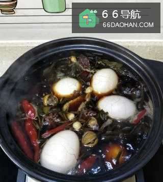 7料汁的味道熬出来后,将鸡蛋放入砂锅内,中小火熬15分钟后关火,盖盖焖两小时。