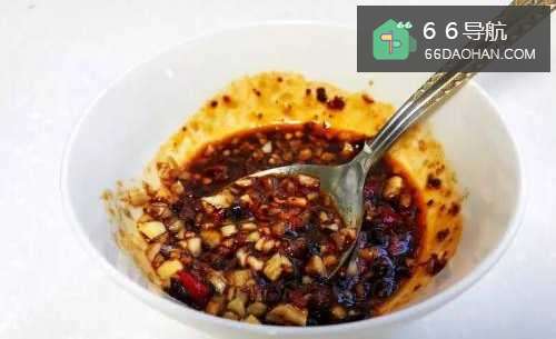 3酱油、乌醋、糖、麻油搅拌均匀后加入蒜末、辣椒末