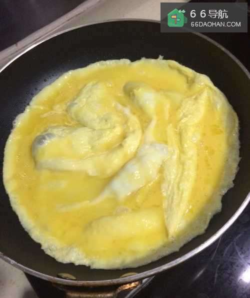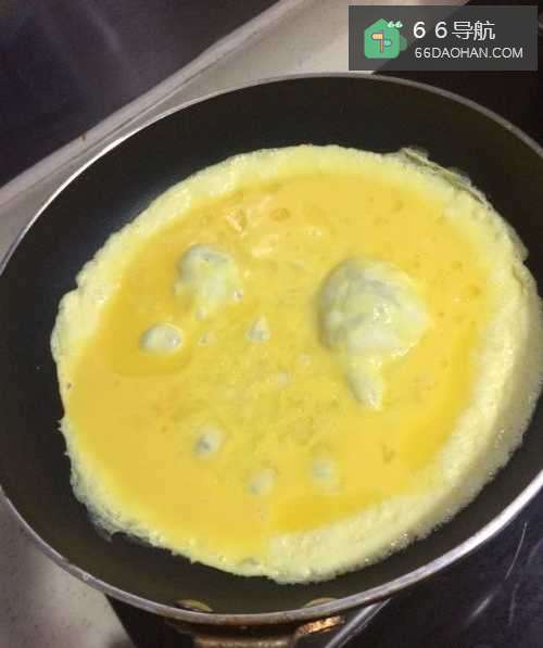 3热锅下油,鸡蛋打进去,待底部稍微凝固;