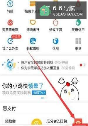 打开手机支付宝,选择右下角的“我的”。