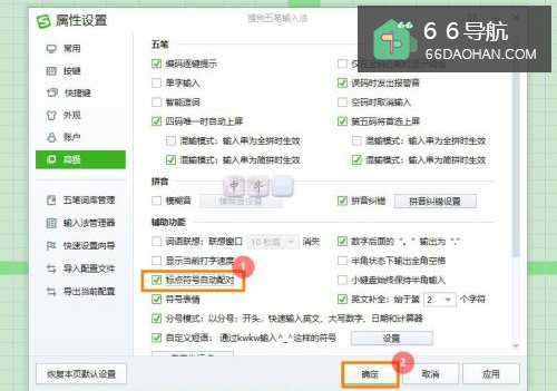 3在高级页面,勾选【标点符号自动配对】,点击【确定】。