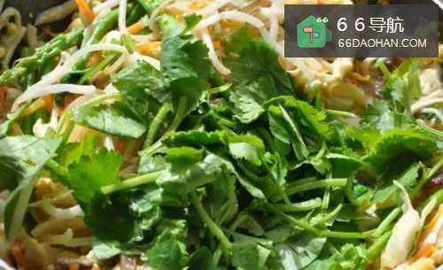 4再将上面的食材及芦笋倒入锅里拌匀,放入香菜充分搅拌数下。