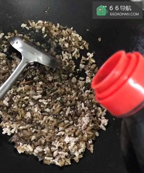 6一直煮到水被头菜吸收,然后加入酱油,继续翻炒