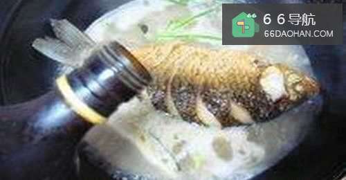 在无杂质的汤中倒入米醋烧开,然后浇至装鱼的盘中将汤末过鱼即可。