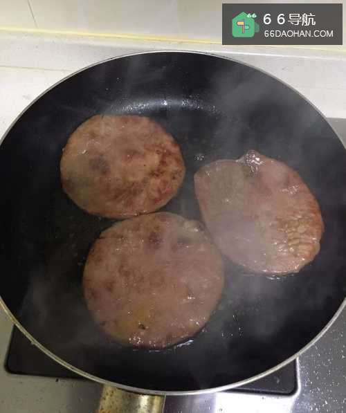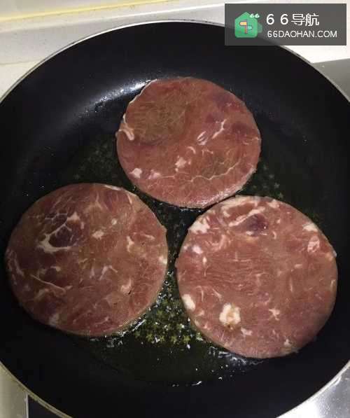 4当闻到喷香的味道后,用铲子铲起来看看底面是否已经熟透,熟透后就把牛排都转过来煎制另一面。