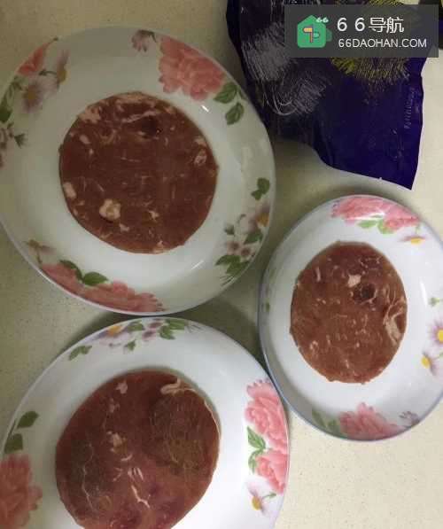 2如图,把牛排一个一个拿出来放在各自的盘子里。