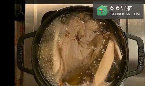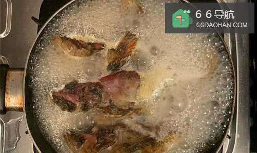 4加2碗清水入锅至大滚后,可将鱼放入鱼袋(免饮用时有鱼骨),连汤加入汤煲。