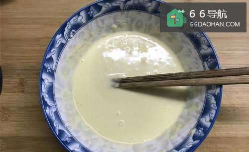 首先我们要把面粉、泡打粉混匀,然后打入1个鸡蛋,加入适量的水,用筷子搅拌均匀成为面糊