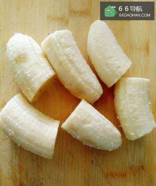 2接着把香蕉剥皮,用刀切成小段,一般一根香蕉切成三段较为合适